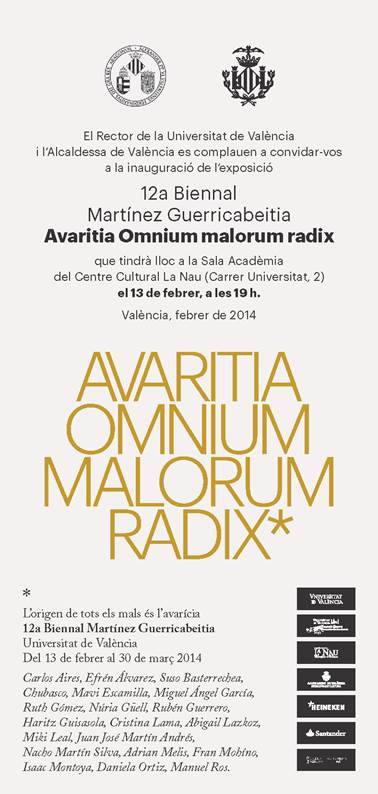 Bajo el lema AVARITIA omnium malorum radix (‘El origen de todo lo malo es la avaricia’), se presenta la obra de 20 artistas seleccionados por un comité formado por una selección de críticos de arte: Sema D’Acosta, Johanna Caplliure, Oriol Fontdevila, Alfonso de la Torre y Lorena Martínez de Corral; y una serie de galerías de arte: ADN (Barcelona), Paula Alonso (Madrid), Nuble (Santander), La Real (Palma de Mallorca) y Aural (Alicante).