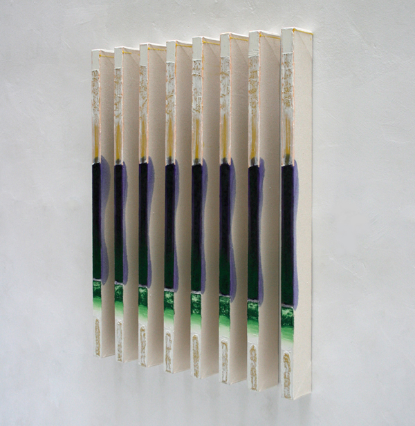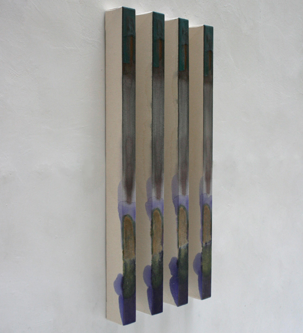 (….) En esta línea de trabajo se anula por lo tanto el concepto del posicionamiento único del cuadro y del espectador, inherente de las composiciones pictóricas tradicionales, negándole así a este último una orientación clara y la seguridad de su visión habitual. Este juego entre trabajos individuales y repetidos, los puntos de vista múltiples y la versatilidad de las opciones de instalación deja atrás las reglas y las definiciones convencionales de una obra de arte clásica. (….)